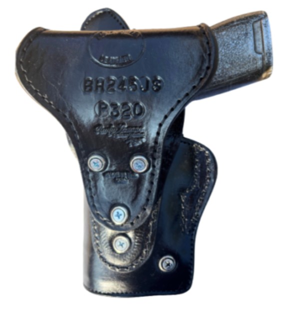 This custom duty holster is made with jacket wear in mind. Comes with a steel-reinforced thumb break snap and is fully smooth leather lined. This custom holster with jacket slot was originally designed for use by the US Border Patrol and is now popular with all Law Enforcement Agencies. Retention screw option available for Level 2 qualification.