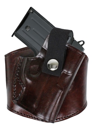 Can be made for right or left-hand draw and is available in black, dark chestnut, or russet. Measure loosely just below the calf for holster fit.